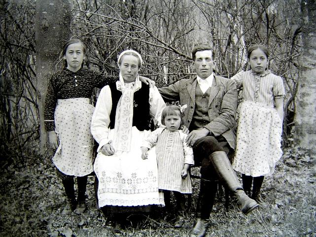 Bild von 1938 Georg (*1906 +1958) stammt von Hof Nr. 11 Ehefrau Katharina Wecker (*1907 +1987) - Tochter von Georg Wecker Tochter (links): Katharina heiratet auf Hof Nr. 3 Tochter: Regina bleibt auf diesem Hof Tochter (rechts): Sofia heiratet auf Hof Nr. 132